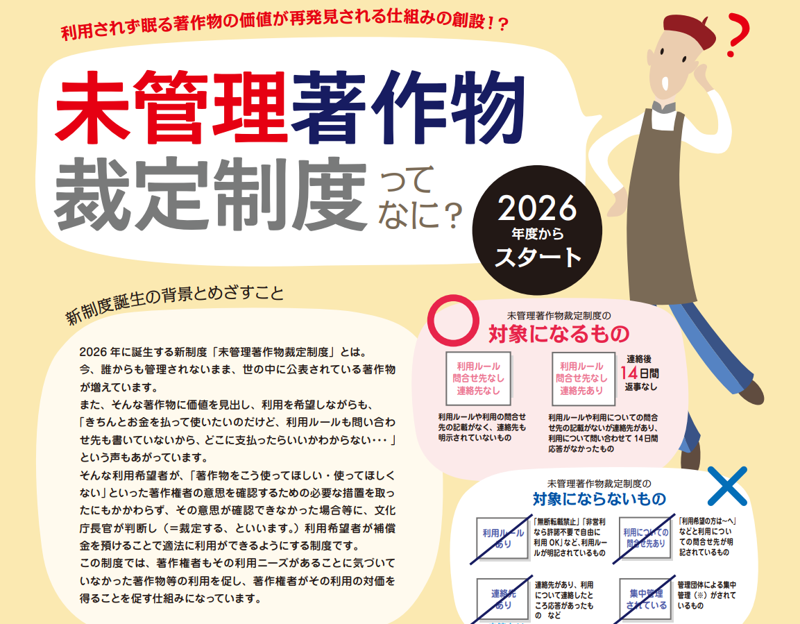 2026年4月、著作権法改正による「未管理著作物裁定制度」の運用が始まります。